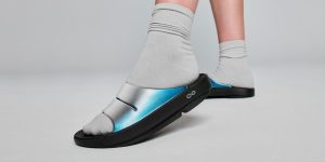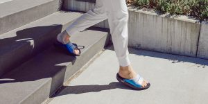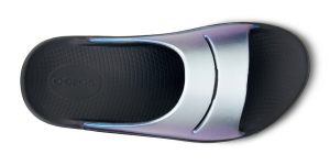 Luxe: Vibrant treatments and prints bring some extra fun and expression to OOFOS’ classic slide silhouette.