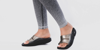 Luxe: Vibrant treatments and prints bring some extra fun and expression to OOFOS’ classic slide silhouette.