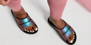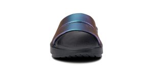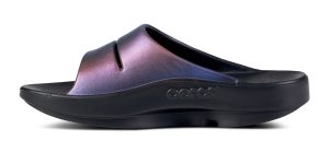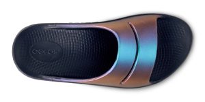 Luxe: Vibrant treatments and prints bring some extra fun and expression to OOFOS’ classic slide silhouette.
